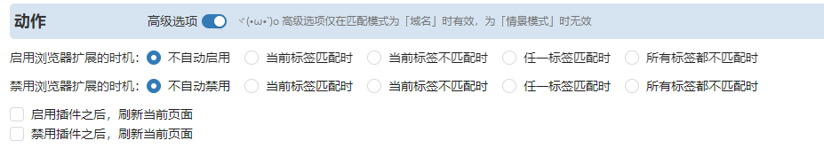 • 需要启用暗色扩展时就同时打开域名匹配的网站