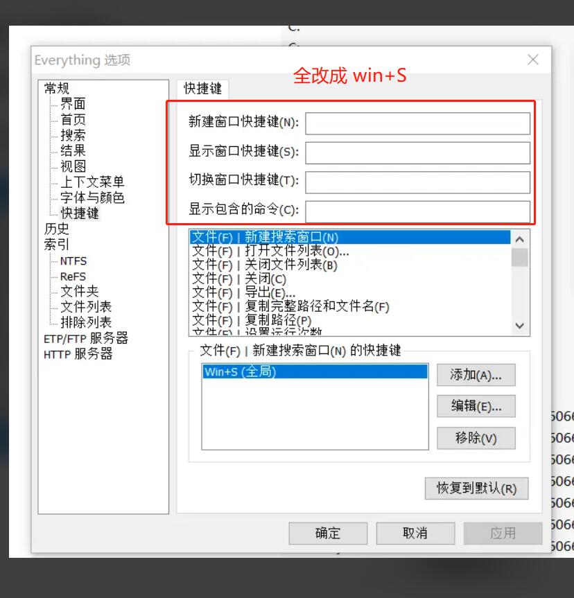 很简单,先把explorer进程给停了,然后再去everything里设置