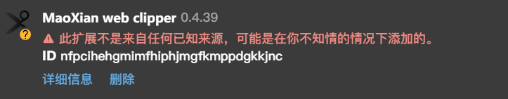 如题,昨天EDGE浏览器自动升级后,打开就提示MaoXian被禁用了:“此扩展不是来自任何已知来源,可能是在你不知情的情况下添加的”。