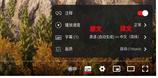 使用方法也很简单,只需要在“字幕语言里”选择 (auto-generated) + 这个菜单条目即可。