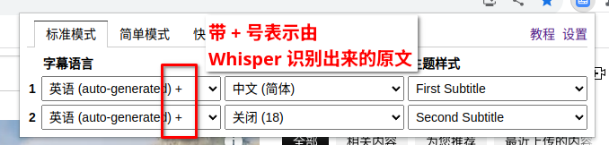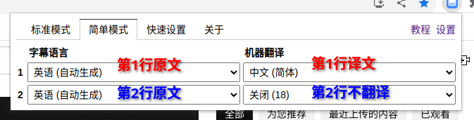 Dualsub 有个“标准模式”,简单说就是插一个新的 HTML 节点到网页上,以实现更精细的字幕控制和渲染功能。使用方法和“简单模式”一样,只是多了一些设置选项。