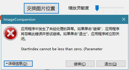 逻辑上讲,只有一张图片时交换按钮不应起作用,所以我增加了逻辑判断,只有两张图片交换功能才会生效。已更新,请下载。