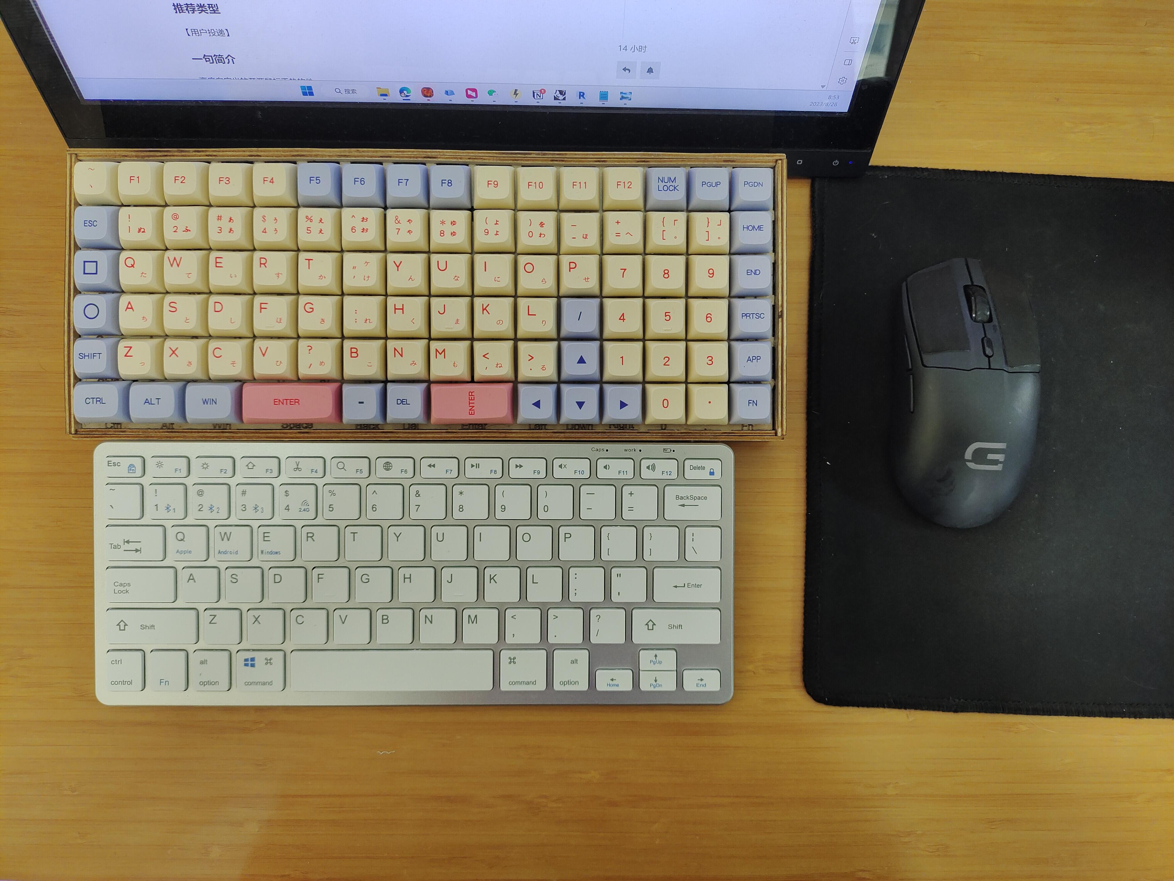 **装备:**罗技键盘(彩色)+杂牌无线(白色)+戴记(黑色)