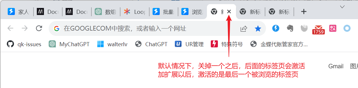 自动记录标签页的打开历史,在关闭标签的时候,激活上一个被使用过的标签页,而不是旁边的标签页。