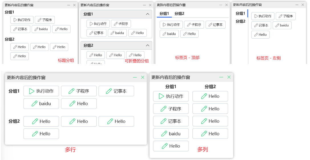 然后就可以在触发后调出一个操作窗,支持设定各种布局方式: