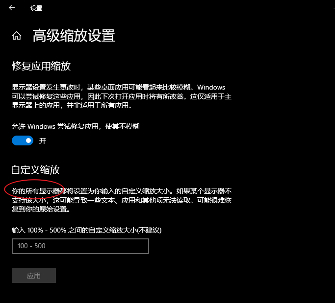 为啥windows的自定义缩放一定要对所有显示器生效。。。