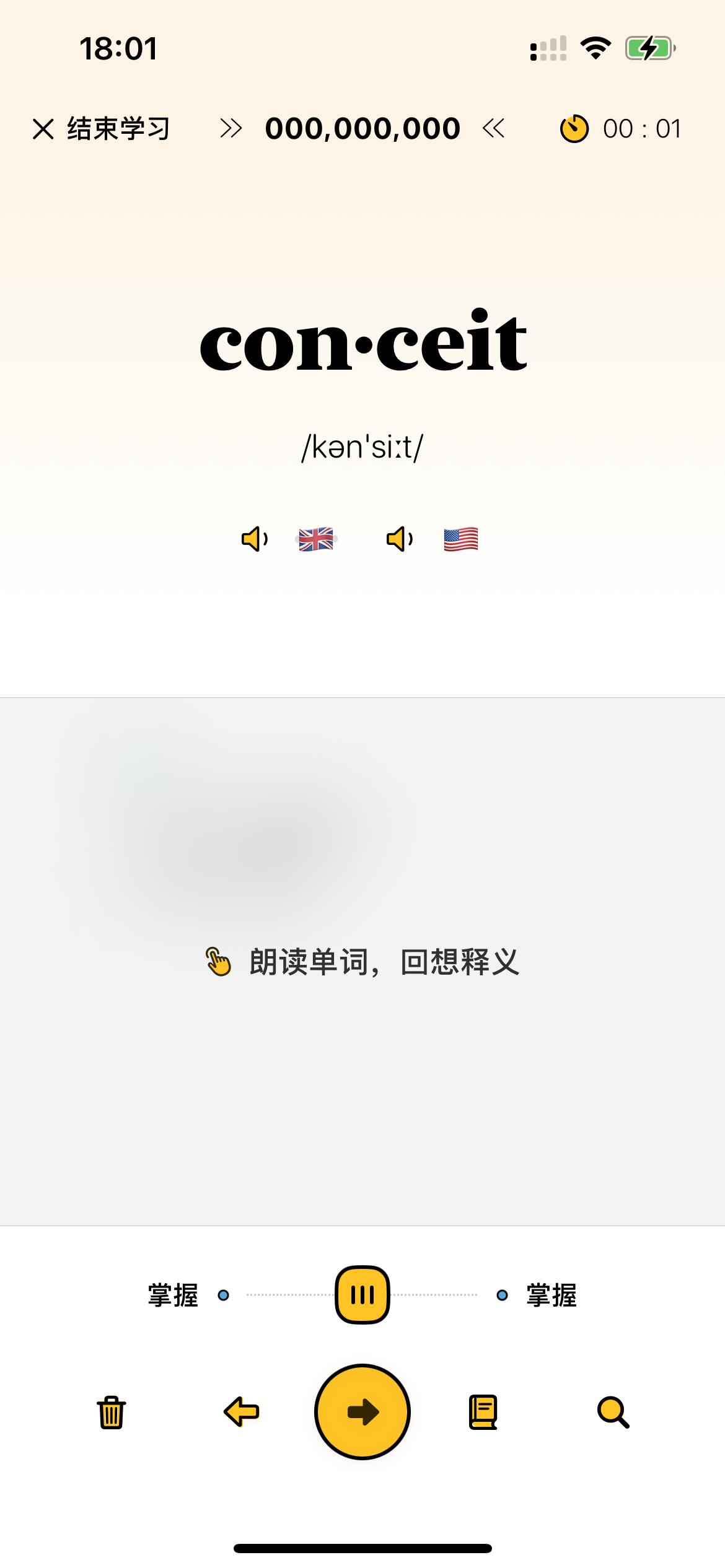大家好,嗯背单词是一个通过超高频,随机抽取单词进行记忆的 App ,刷单词的效率是同类软件的数倍以上。同时也有着体验一级棒的听写默写功能,帮助你进一步提升词汇能力。