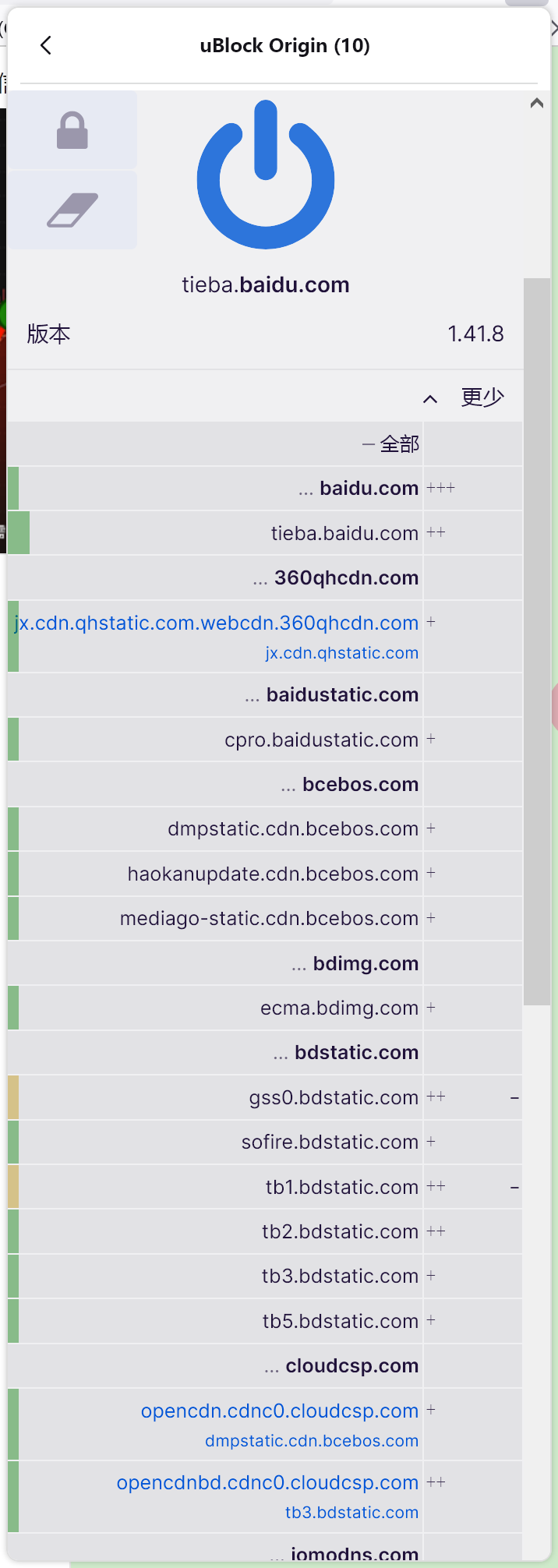 扩展弹出面板,"+“和”-"好像对应当前页面通过和拦截的请求数