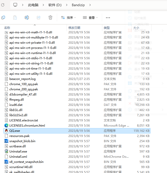 qq安装目录下显示的还是bandizip的地址