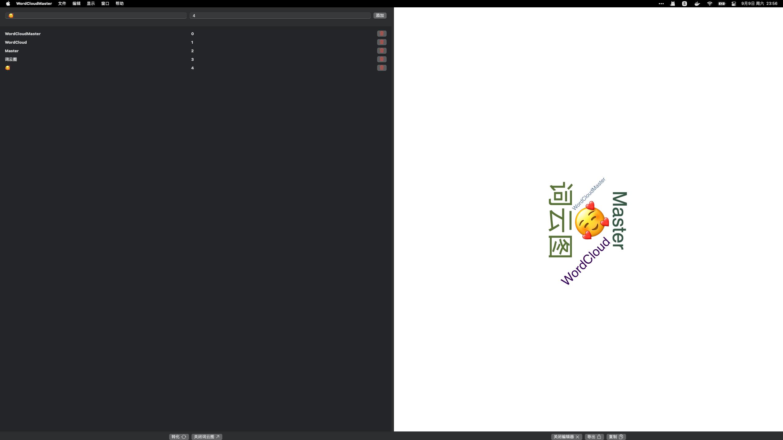 - 导出高质量的词云图图片,与他人分享或用于您的项目