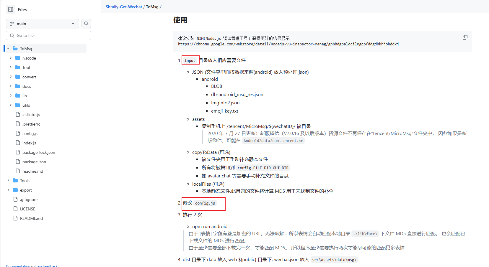 2、翻了一下文档过于难以理解,比如我想从PC导出聊天记录,但是聊天记录mht文件是如何产生从未说明,且导出的config.js配置并不足够清楚,这个config.js是只支持一对一的聊天记录导出不支持群聊?还是说可以指定只导出一对一的聊天记录而配置的?或者是什么别的?其他疑问不一一列举了