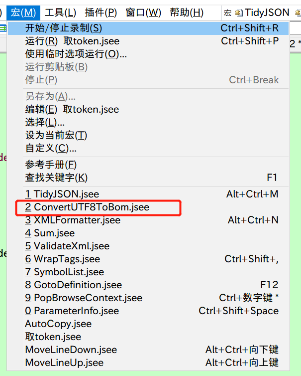 点击宏-ConvertUTF8ToBom.jsee进行编码切换