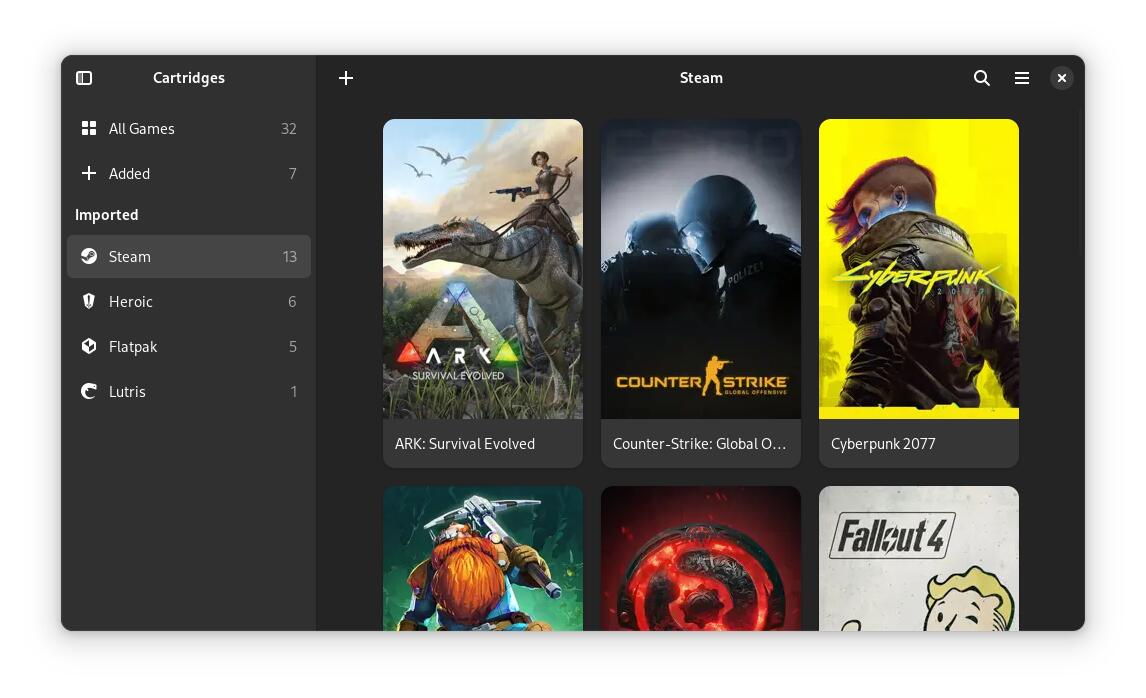 Cartridges 是一个简单的游戏启动器,使用 GTK4 和 Libadwaita ,用 Python 编写。 有如下特点: