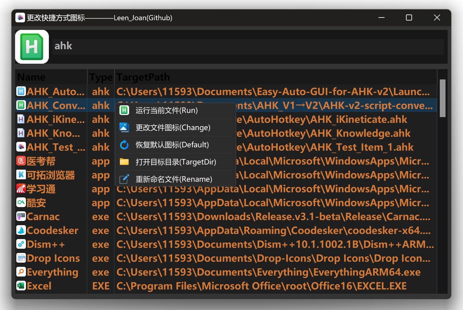 (2)下载地址: https://github.com/iKineticate/AHK_ChangeIcon/releases