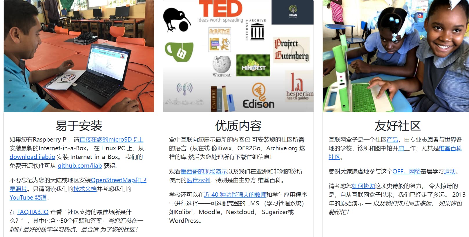 1TB的合法离线资源装进硬盘,开启一个局域网服务器,为没有互联网的地区提供服务,如古巴和非洲地区。感觉对普通人也有用,比如信号极差地区和边疆、海上工作人员,所以我收藏了。万一到时候到一个没网的地方,我还可以照着这个思路自己做一个。 官网|下载地址|