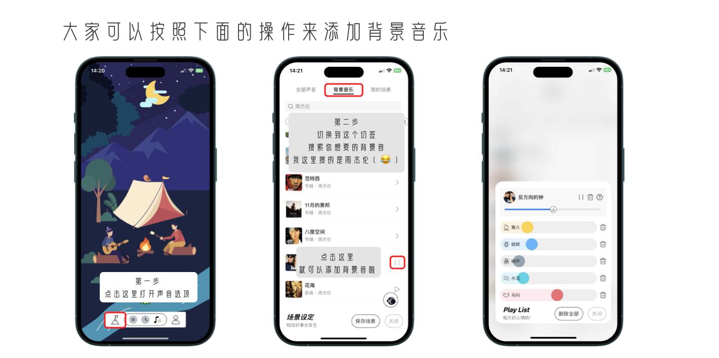 做了一个添加背景音的教程图片:按照上面的操作就可以添加背景音啦。