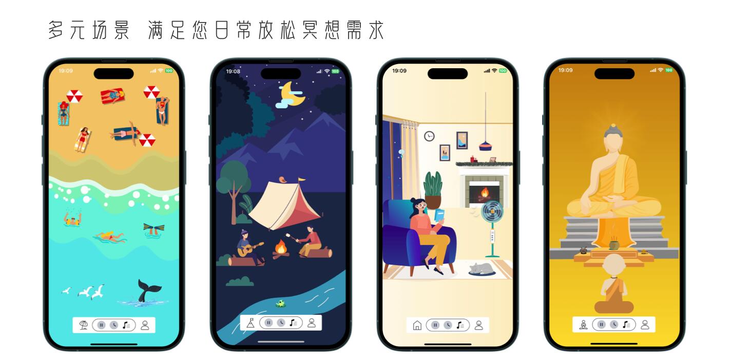 多元场景:无论您喜欢宁静的营地、浪漫的海滩、舒适的房间还是祥和的佛堂,唯静都能满足您。