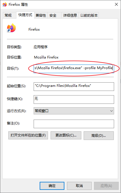 我想用参数 D:\Program Files\Mozilla Firefox\firefox.exe -profile MyProfile 启动我的 firefox,用 run 命令怎么都不行,双引号单引号都用了,就是不成功