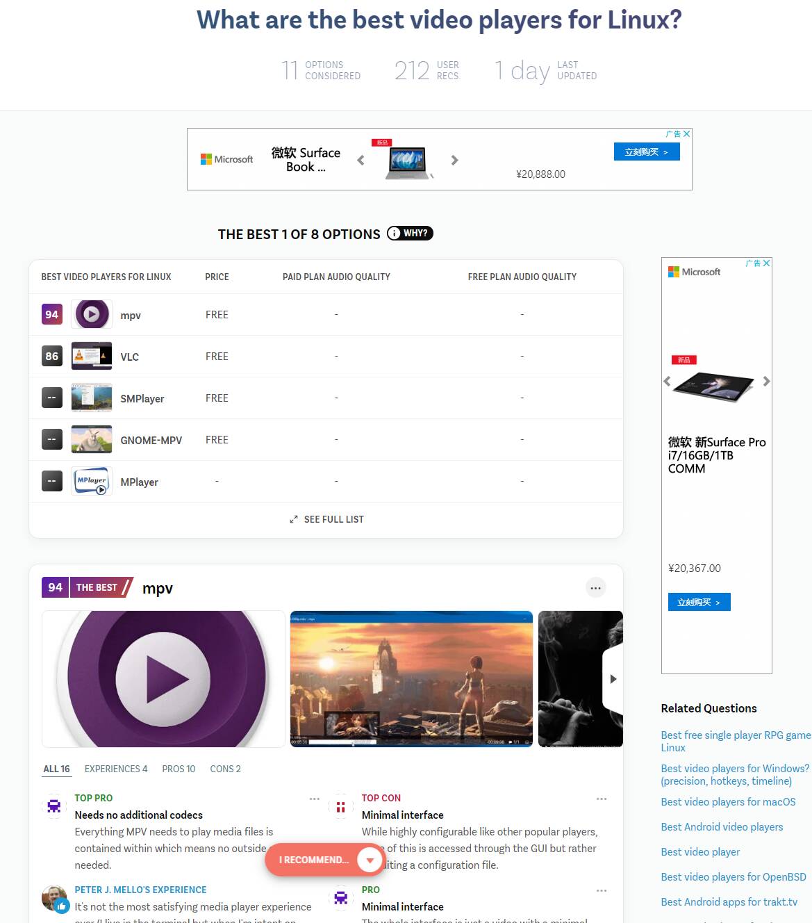 不过真的很巧,恰好今天我遇到一个网站,觉得有非常大的参考意义: https://www.slant.co