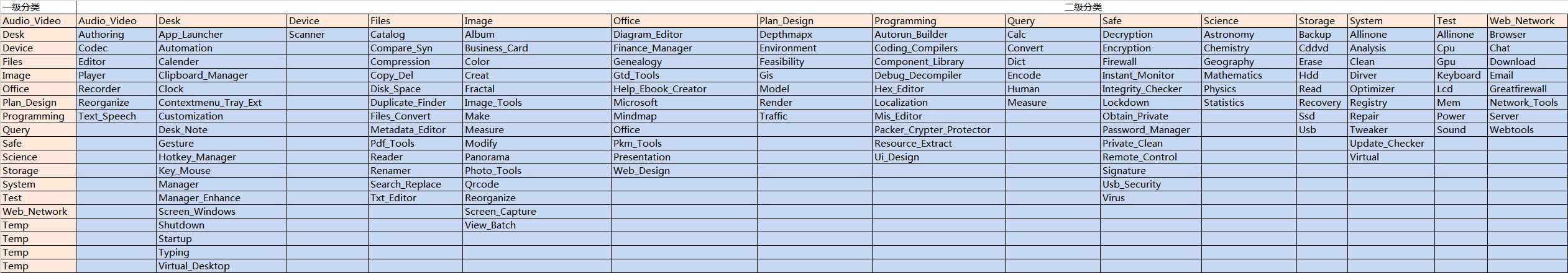 (并不是每个二级分类都有三级分类,未来经过对这些软件筛选,希望可以把分类控制在两级,不要第三级分类)
