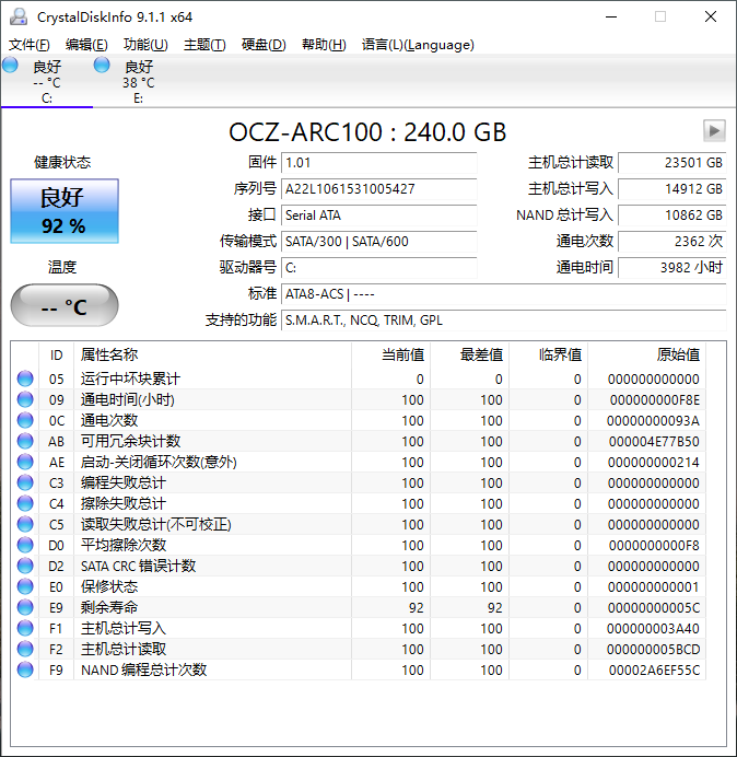 楼主的是固态盘,而且我说的那几个值也都是0,所以不确定楼主的盘是什么情况,看起来磨损才到8%,按理来说不应该会有问题的。