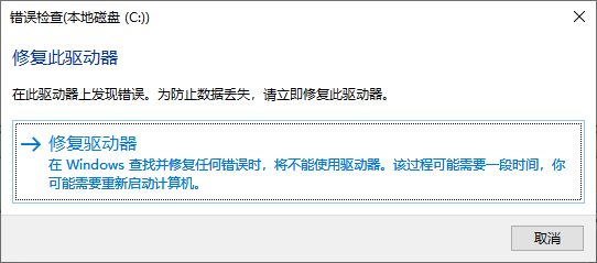 最近电脑总是弹出磁盘错误,点击修复会重启电脑,在重启界面进行修复。但每次修复后,过几天仍然会出这个弹窗需要修复。