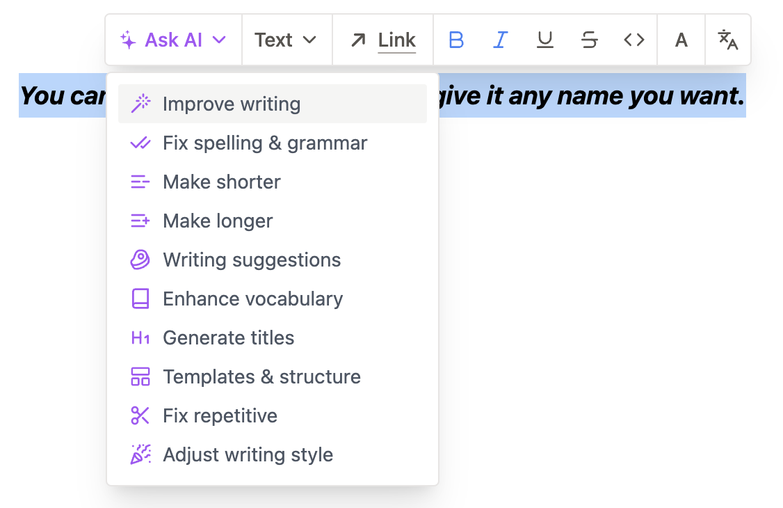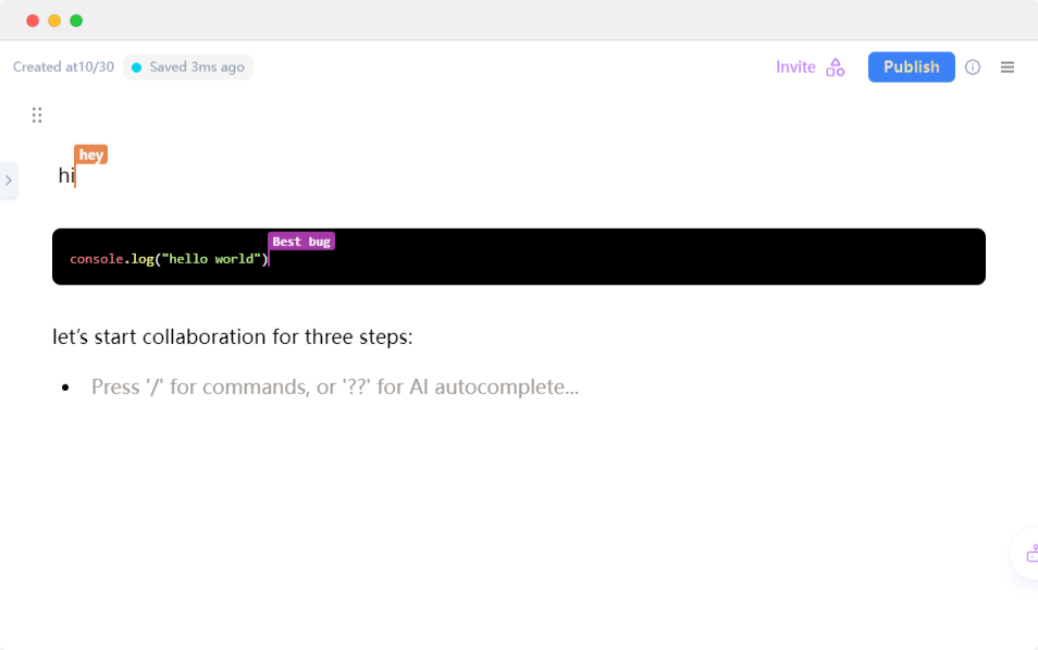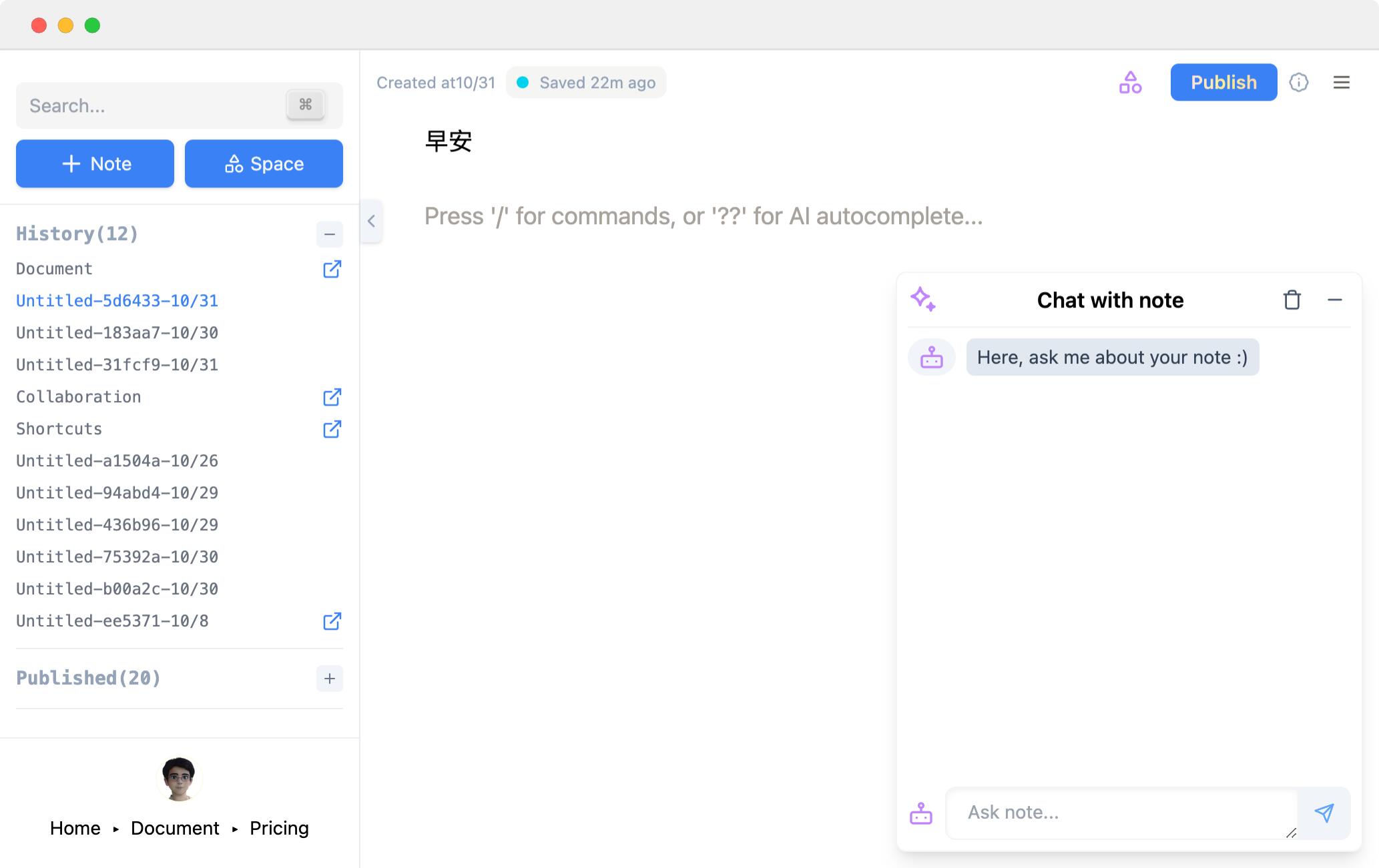 写笔记,AI增强写作/润色,附带Chat小组件与笔记对话,支持多人协作,界面简洁。