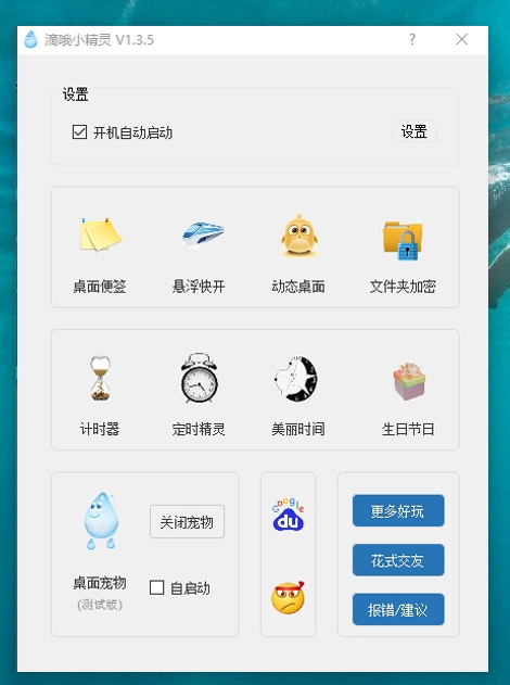 悬浮快开:快捷打开任意程序、文件夹、网站、文件,可以自制超级漂亮的桌面快捷打开组,告别枯燥死板的桌面图标排列方式;双击预复制文字(适合经常复制粘贴的朋友)
