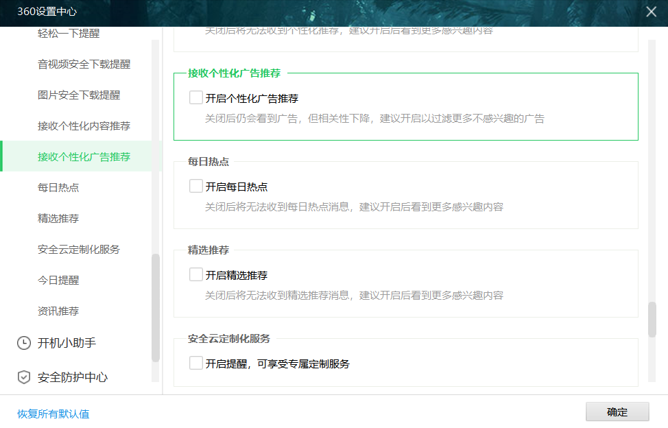 把所有的内容推荐全关。