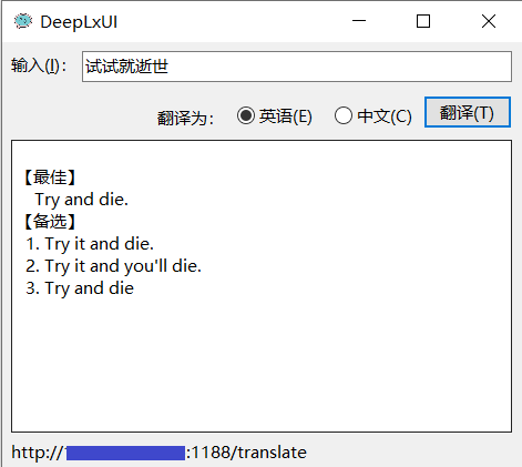 运行后即可获得 API 地址:http://127.0.0.1:1188/translate