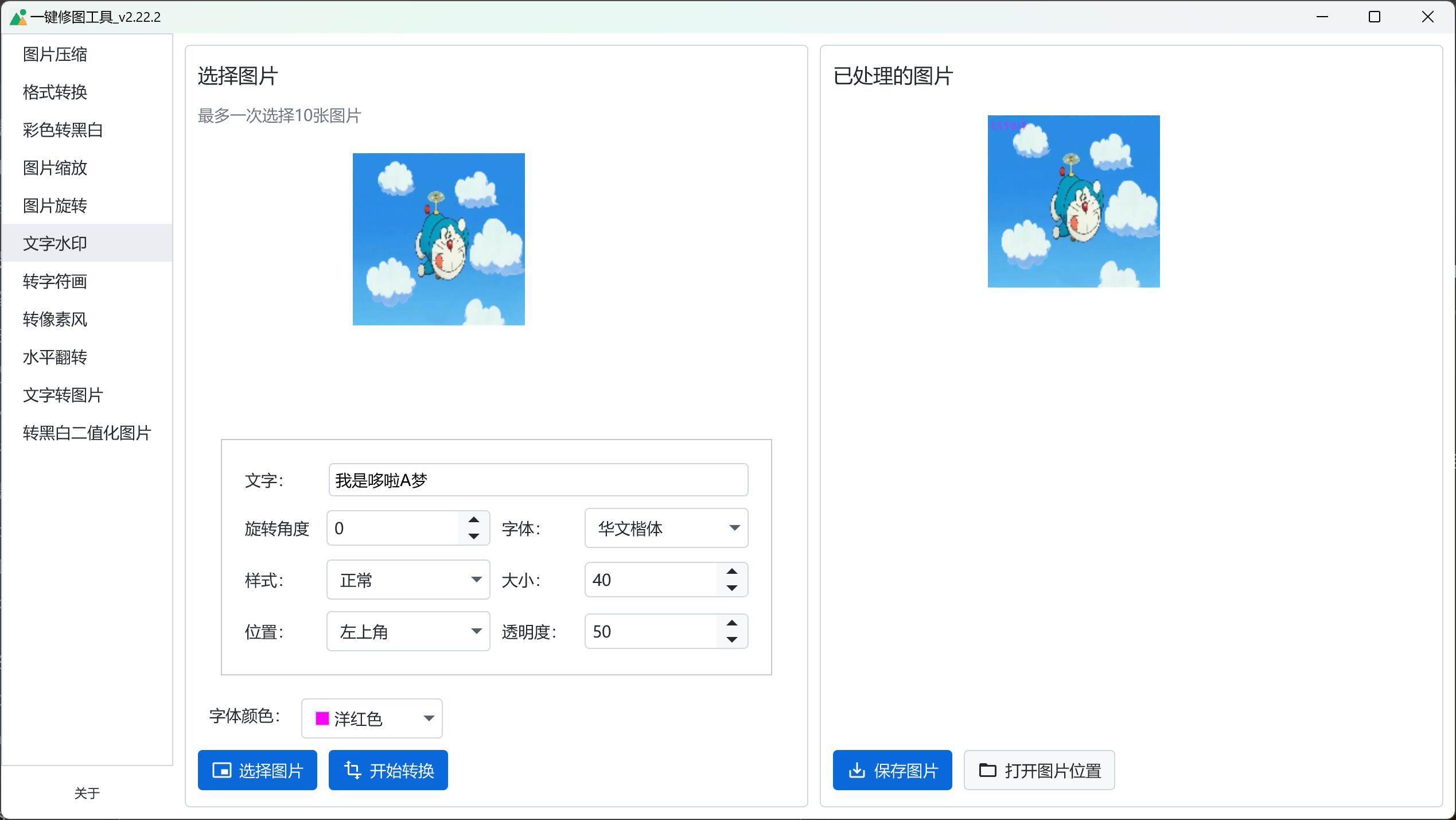一个图片批量编辑的软件,可以压缩、格式转换、缩放、旋转、加水印、转字符画、像素画、制作文字图片等。