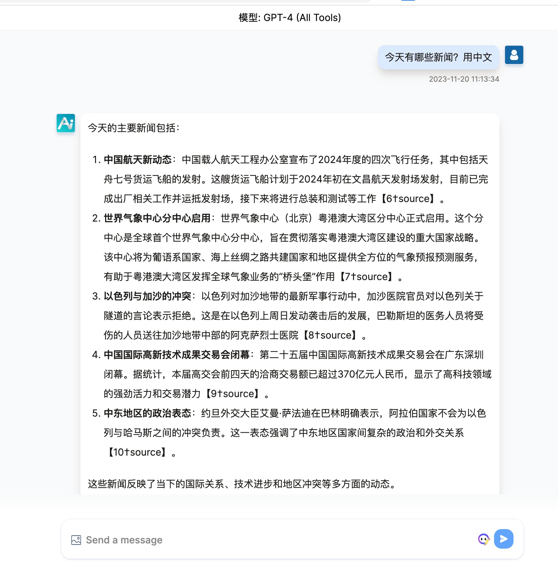 当AI判断你的问题需要联网查询最新数据才能回复的时候,会自动联网获取答案。下面是一个示范:
