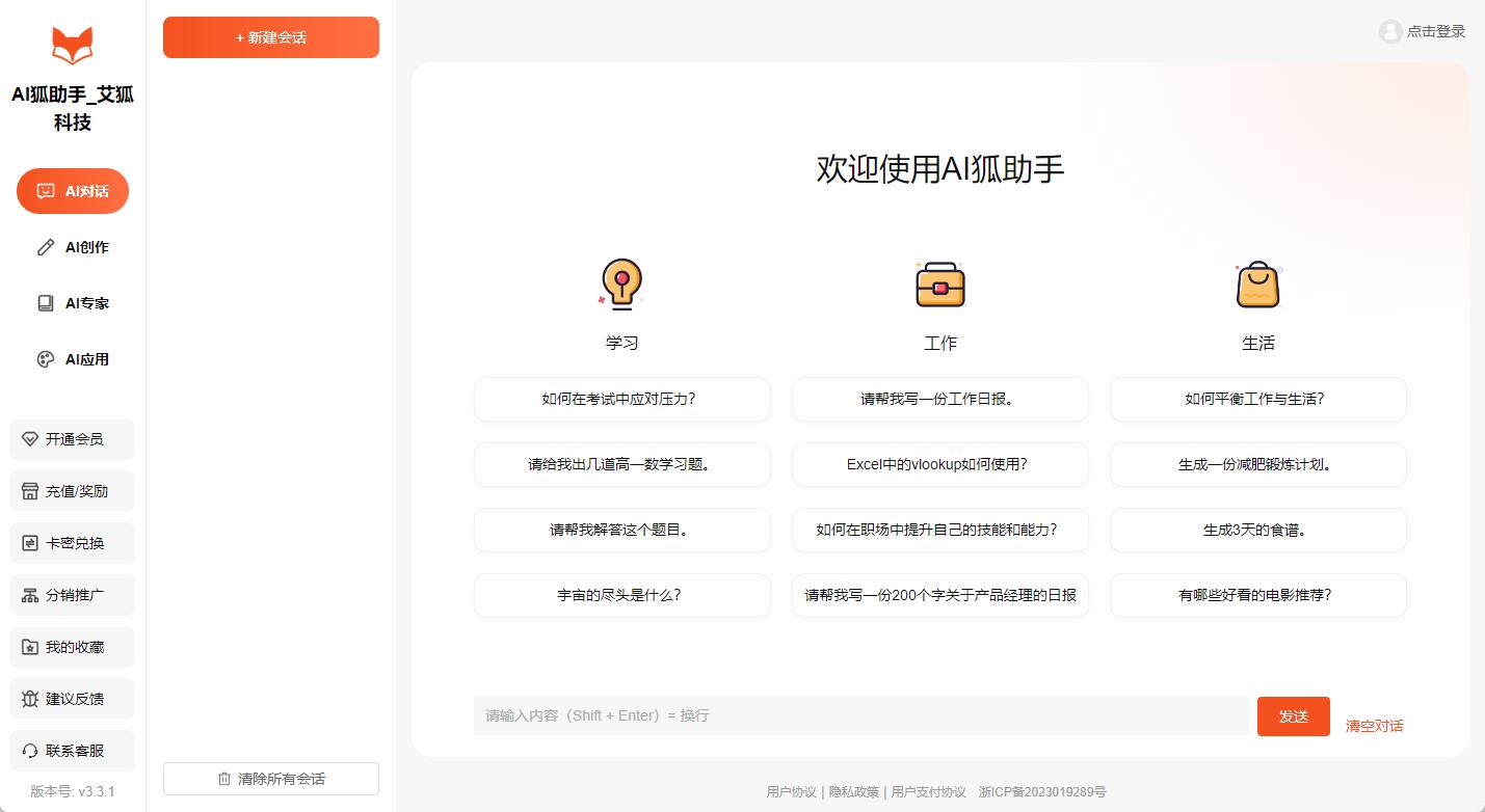 你可以向AI狐提出问题、寻求建议、寻找信息等,它会尽力给出相关的回答和解决方案。
