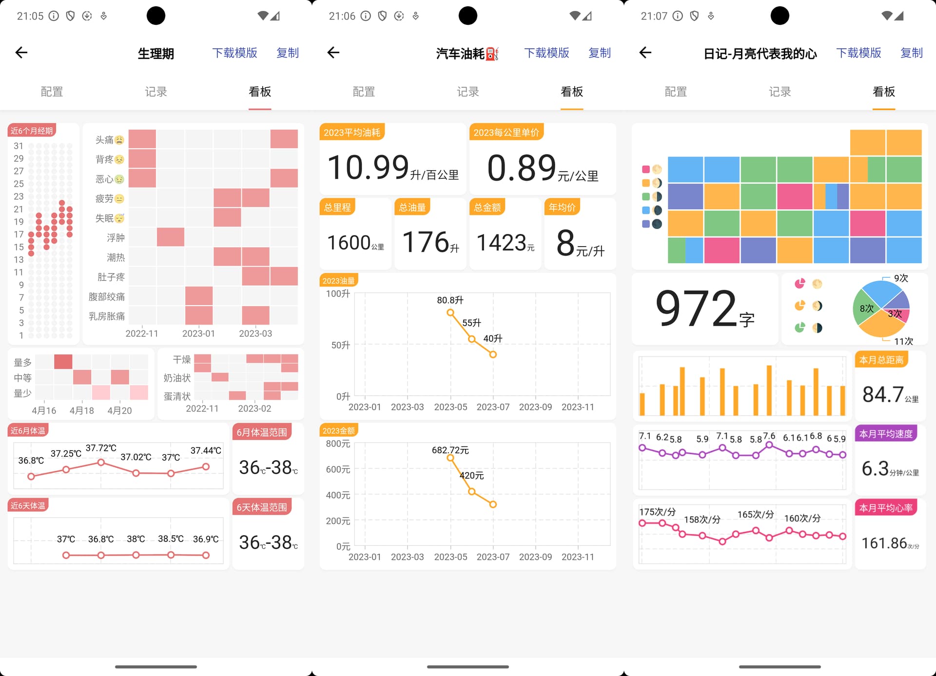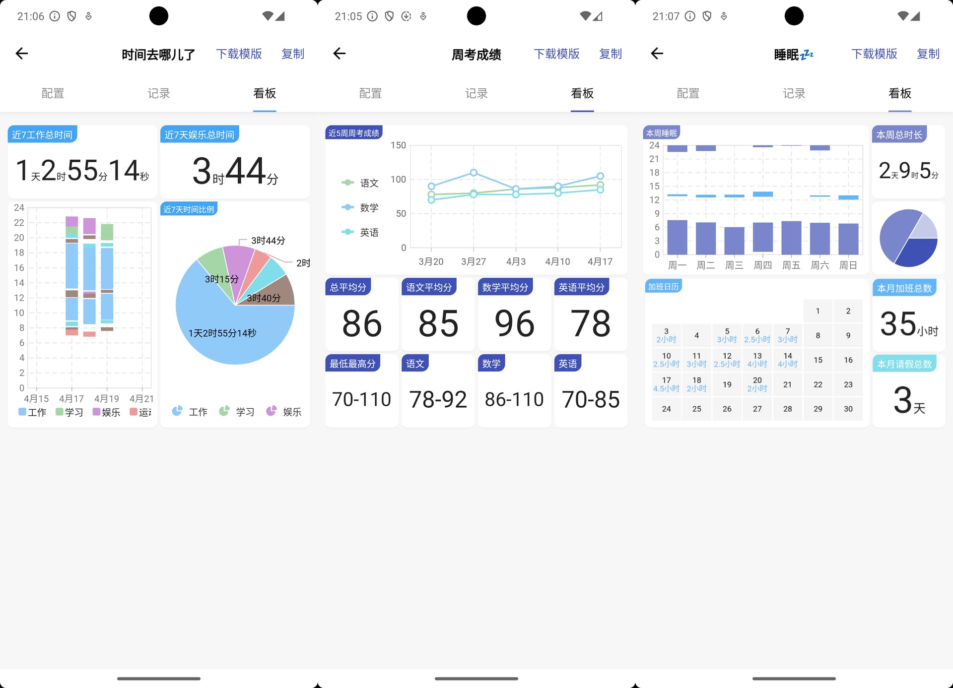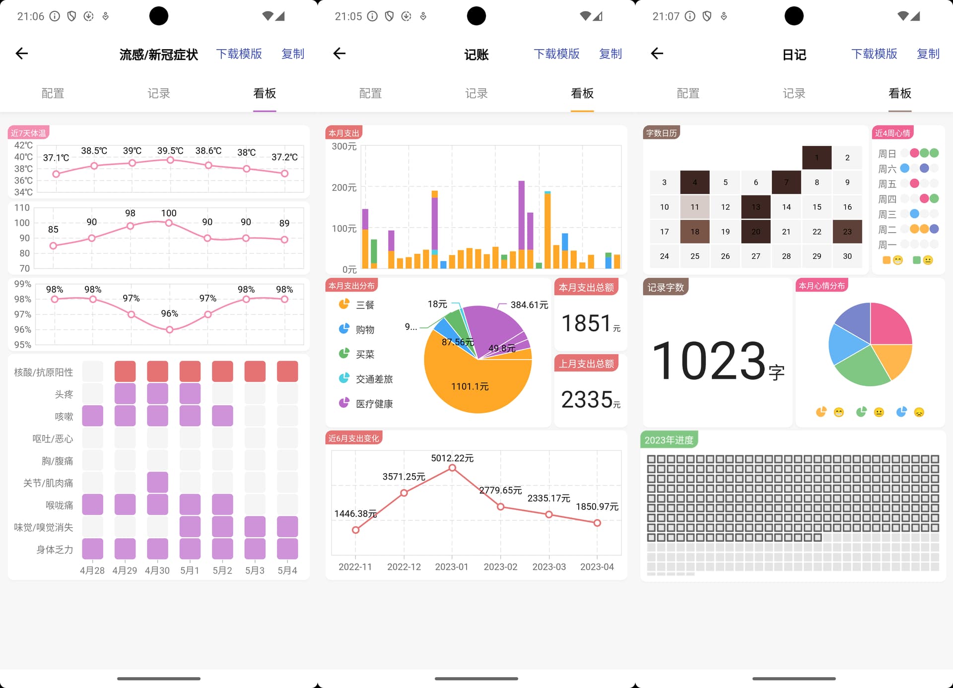 3步使用法:创建模版 → 添加记录 → 配置图表