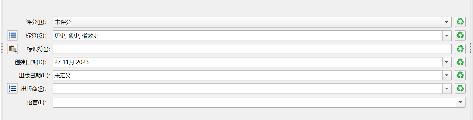 但是在主视图 即书库视图中 标签总是以字母顺序排列 即"道教史,历史,通史"。