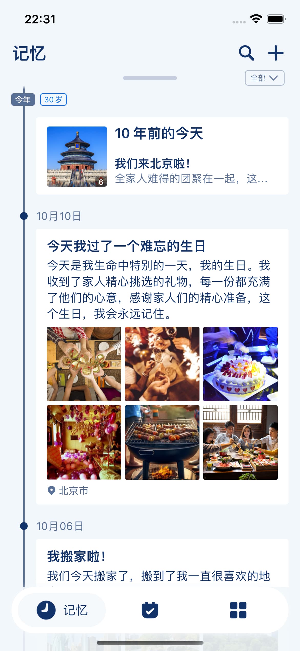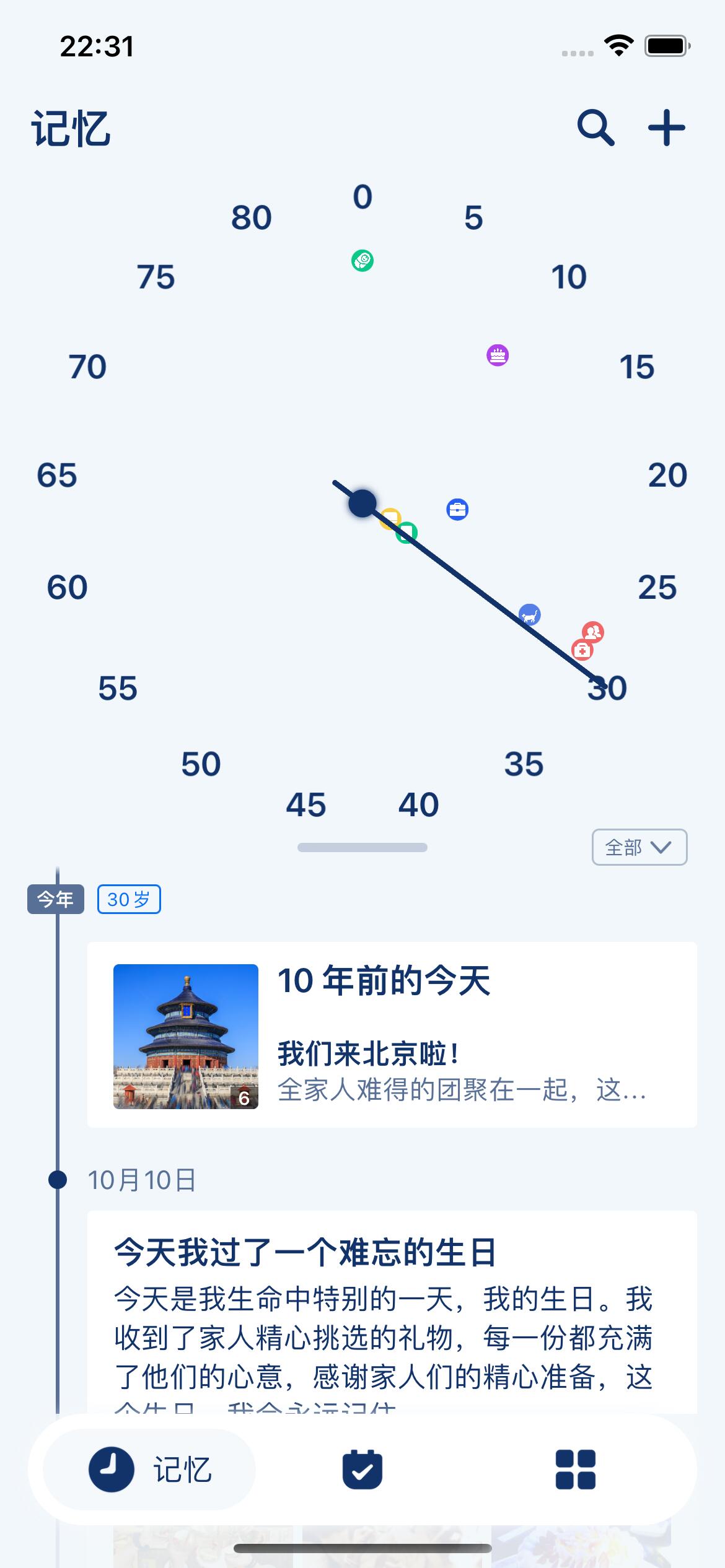 人生,总有一些瞬间令人难忘:入学、毕业、相遇、工作、结婚、生子。而“往昔”,则是帮你记录这些珍贵记忆,还可以创建纪念日。
