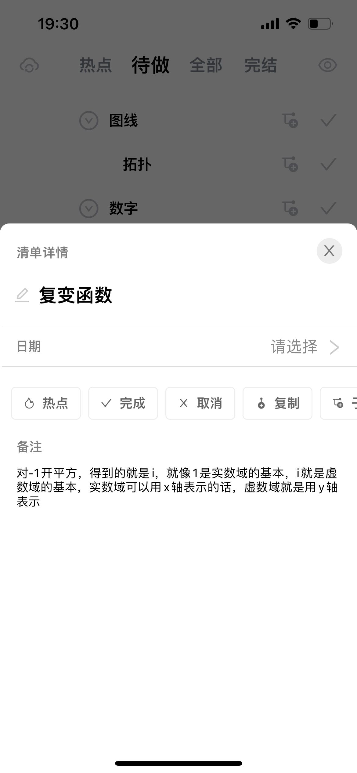其他操作的话,点击一条清单,就会出现一个半屏面板,可以在这里进行清单的改动,删除,添加日期,备注等操作,该有的也都有。如果你今天想做一个挺迫切的待办,那么就可以将清单设置为热点清单,点击火焰图标按钮