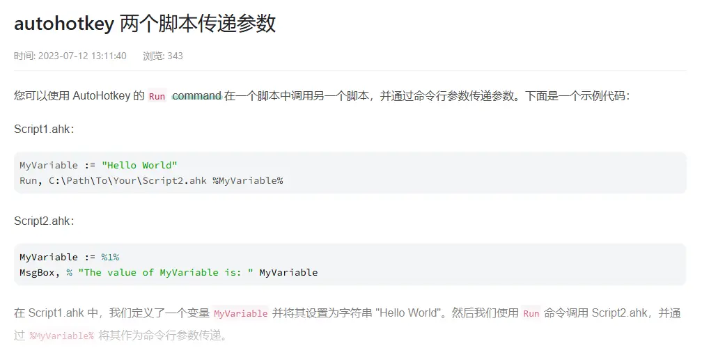 【C:\你的脚本路径.ahk 参数1 参数2】