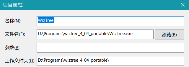 举例操作步骤就是,在开着 E:\下载 文件夹的资源管理器窗口中,召唤 Claunch ,点“WizTree”图标,“WizTree”程序就会打开并在其中加载 E:\下载 文件夹。