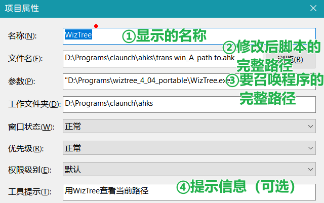 关键不是这个,是怎么将Claunch的“参数”传给AHK脚本,达到AHK脚本运行时①【召唤“参数”所指向的程序路径】并②【将AHK脚本获取的其他信息传给程序】。②这个在dog兄的spacesniffer脚本中就有,缺的是如何实现①。