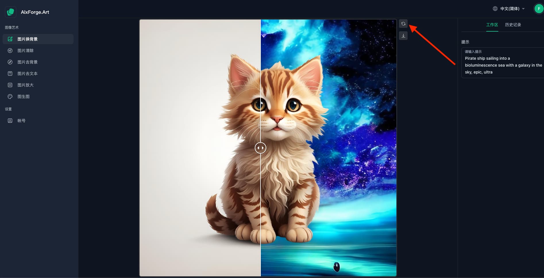 - 瞬间实现图片换背景: 想在图片中创造奇妙的场景,但不具备专业技能?AlxForge的换背景功能让你只需轻轻一点,就能让图片瞬间变幻出令人惊艳的效果。