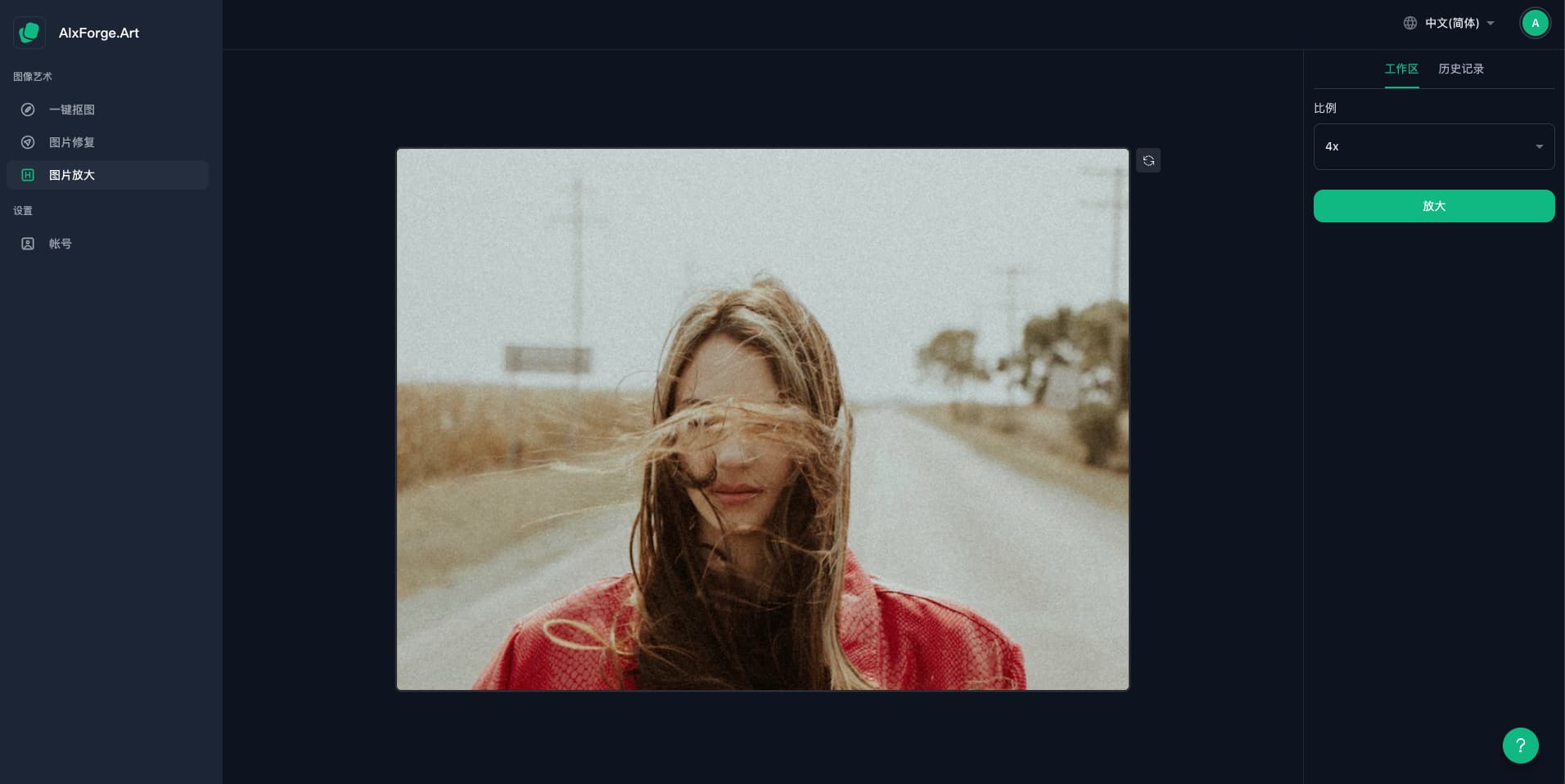 - 图片放大变得简单: AlxForge提供了可靠的图片放大功能,让图片可以从模糊变成清晰,如果还不满意,AlxForge提供了一键转矢量图的功能,让图片无穷放大,并且不失真。