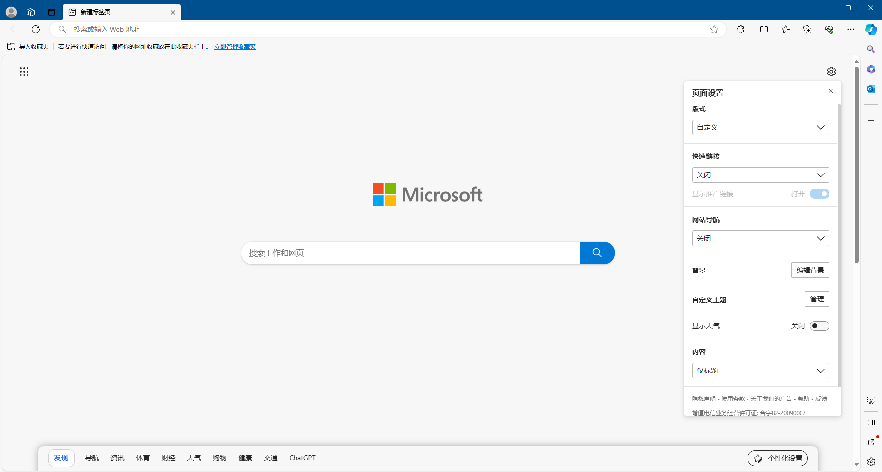 还有一个方法就是通过edge policy配置,具体方法可以自行搜索研究,https://learn.microsoft.com/en-us/deployedge/microsoft-edge-policies,设置一下NewTabPage相关项。