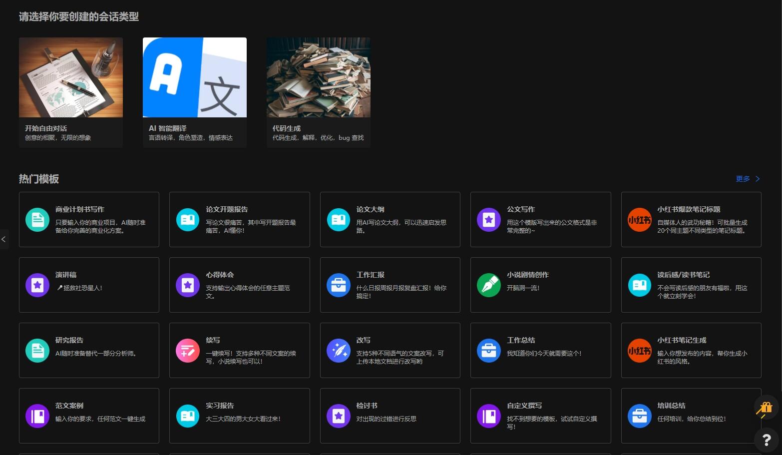 热门模板(30+专业场景写作,支持快速生成高质量的论文/文章和职场人内容)