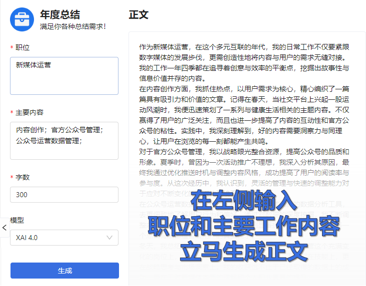 用户输入文字,产品会通过提供智能化的AI自然语言大模型,提供高质量的回复和文章内容。