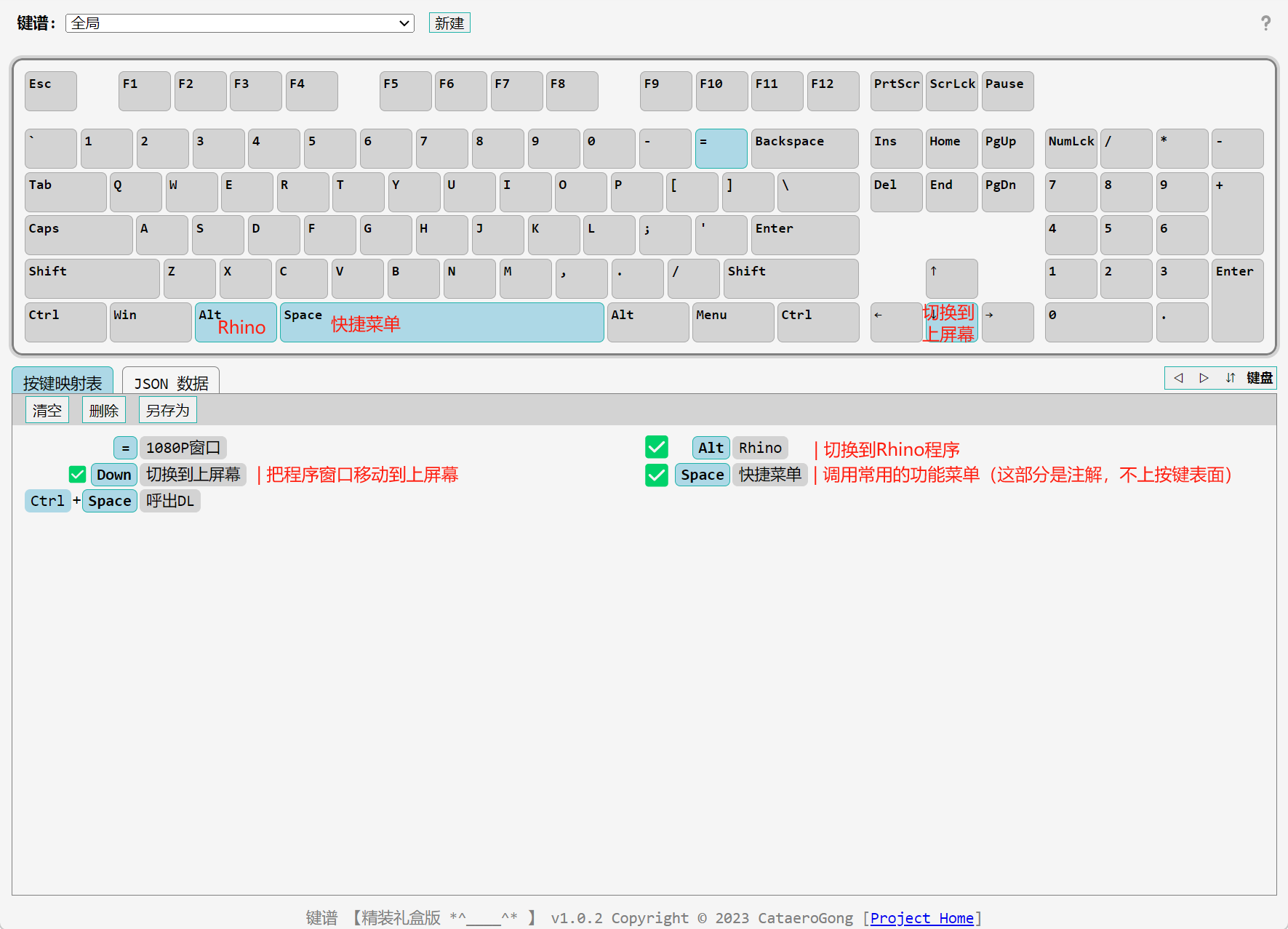 - 键图中的“快捷键列表”支持交互,调整显示位置