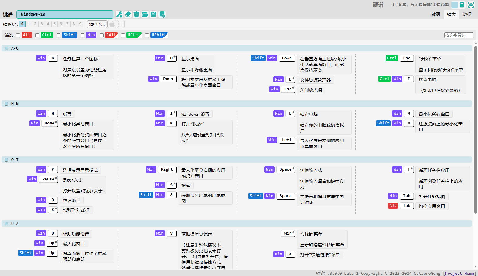 - 功能: 根据修饰键筛选显示相关组合键
