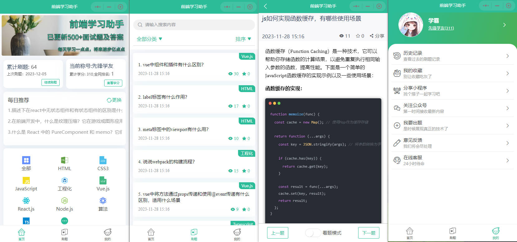 这是一款为开发者学习,面试题,记录用的学习工具。小程序按照分类,列表,问题详情提供了一个学习平台。