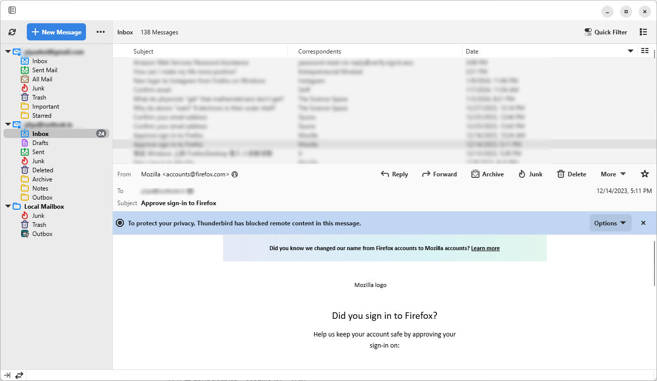 请问win上有没有什么好用的第三方邮箱软件,主要收取多个网易邮箱和谷歌邮箱的邮件,目前试用了Mailspring,Outlook,foxmail,网易邮箱大师,感觉网易邮箱大师体验较好一些,大家有没有其他更好的软件推荐,谢谢