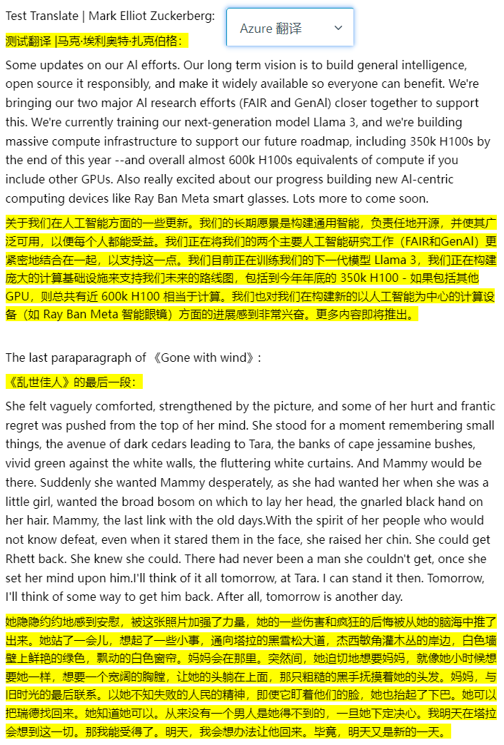这几家效果真没多少差别,但是Azure翻译的最接近原文。